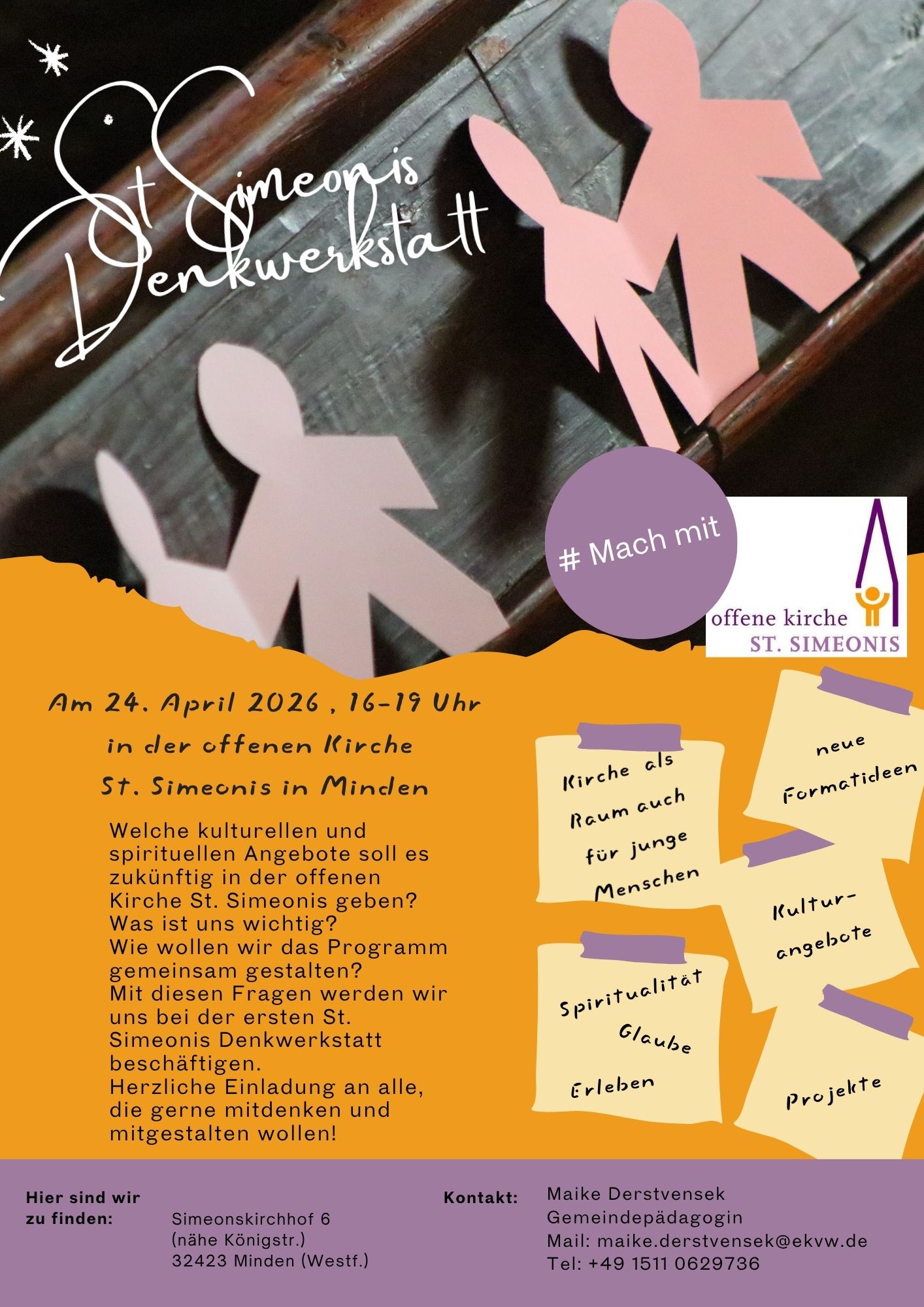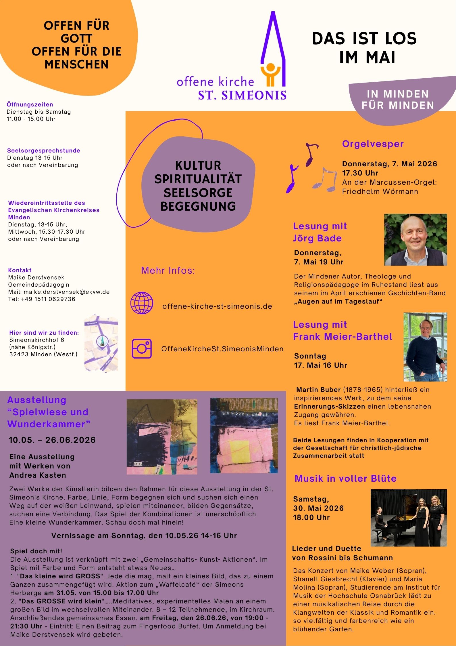Im April ist der Geschichten-Band „Augen auf im Tageslauf“ von Jörg Bade erschienen. Der Mindener Autor, Theologe und Religionspädagoge im Ruhestand, hat den Buch-Titel im Herbst und Winter 2025/26 zum Motto seines Alltags zwischen Minden, Dortmund, Berlin oder unterwegs mit der Bahn in Deutschland gemacht. In der Offenen Kirche St. Simeonis wird er zunächst „Nach BVB gegen Bilbao“ als kleine Einstimmung auf sein aktuelles literarisches Projekt lesen. In der Wormser Synagoge aber ist Jörg Bade auf die Geschichte von Herta Mansbacher gestoßen, eine gebürtige Darmstädterin, die in Worms als Lehrerin an der Westendschule 1935 aus dem Schuldienst entlassen wird, um dann an der kleinen jüdischen Schule in Worms ihre Schützlinge bis zur Deportation 1942 und ihrem Ende im Vernichtungslager nicht allein zu lassen. Zudem wurde Herta Mansbacher auch durch ihr mutiges und entschlossenes Handeln in und nach der Reichsprogromnacht 1938 zur Heldin und Märtyrerin. „Augen auf im Tageslauf“ würdigt deshalb ihr Leben und Wirken mit einer nach ihr betitelten Geschichte. Die Lesung beginnt in der Offenen Kirche St. Simeonis am 7. Mai um 19.00 Uhr. Die Gesellschaft für Christlich-Jüdische Zusammenarbeit Minden lädt zum Abend ein. Ein Gespräch über die Geschichten ist ausdrücklich erwünscht.
